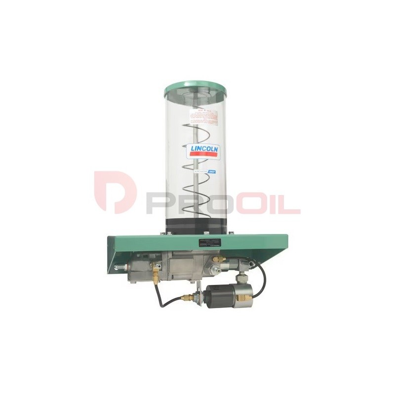 Model 83167 is an air-operated, positive-displacement pump delivering a maximum volume by means of a single stroke of the pump. Solenoid air valves and adjustable, solid-state time controls are integrated into the pump body. This pump unit is designed to deliver grease to single-line metering devices and includes a special high-volume refill fitting.