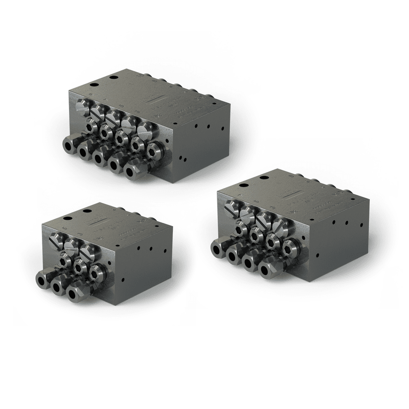 Rozdzielacz progresywny LINCOLN typu SSVD z 18 wyjściami z możliwością regulacji dawki smaru.