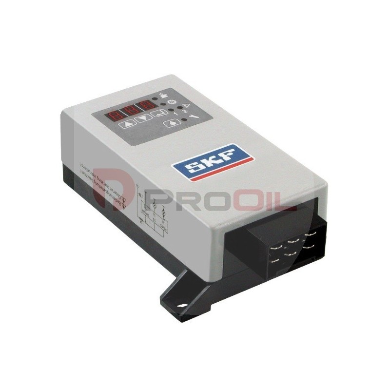 Model IG 502-2-E to wszechstronna jednostka służąca do sterowania i monitorowania układów smarowania w pojazdach, kompatybilna zarówno z systemami jednoliniowymi, jak i progresywnymi. Urządzenie posiada kompaktową obudowę oraz czytelny wyświetlacz, który umożliwia łatwe konfigurowanie ustawień i kontrolę działania.