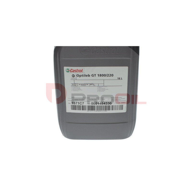 Seria Castrol Optileb™ GT 1800 (wcześniej znana jako Tribol™ FoodProof 1800) to syntetyczne oleje przekładniowe przeznaczone do urządzeń stosowanych w przemyśle spożywczym. Zostały zaprojektowane do pracy w przekładniach ślimakowych oraz innych typach zamkniętych przekładni zębatych pracujących pod wysokim obciążeniem. Produkty te spełniają surowe wymagania normy NSF-H1 i są odpowiednie do zastosowań w branży spożywczej oraz napojów, gdzie istnieje ryzyko przypadkowego kontaktu środka smarnego z żywnością. Oleje Optileb GT 1800 są dostępne w standardowych klasach lepkości ISO, typowych dla przekładni ślimakowych, w zakresie od ISO VG 220 do ISO VG 680.